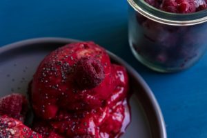 Superfood-Rezept: Himbeereis mit Joghurt und Mohn